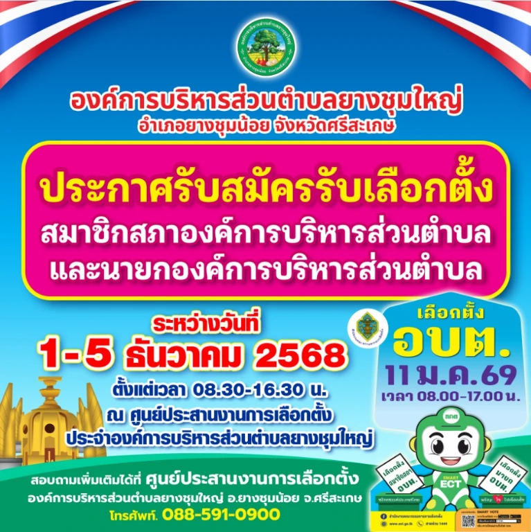 ยินดีต้อนรับเข้าสู่ องค์การบริหารส่วนตำบลยางชุมใหญ่ ติดต่อสอบถาม โทรศัพท์ : 0885910900 อีเมล : yangchumyai@hotmail.com